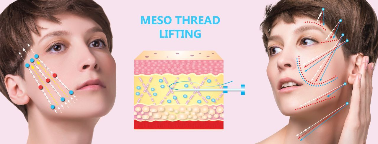 Mit Hilfe von feinsten Nadeln werden PDO-Fäden wie ein Netz in die Haut eingezogen. PDO (Polydioxanone) ist ein resorbierbares (=auflösbar) Material, welches seit vielen Jahren als chirurgisches Nahtmaterial verwendet wird. Die eingebrachten Fäden regen die Kollagenneuproduktion an und führen daher zu einer Glättung und Straffung der Haut. Abgesunkene Hautpartien (z.B. Wangen, Brauen, Nasolabialfalten) können mit speziellen Widerhakenfädchen (BARB-Fäden) behandelt werden, diese haben durch feinste Häkchen einen zusätzlich mechanischen Lifting-effekt. In der Regel reicht für die Behandlung eine milde schmerzstillende Salbe, welche ca. 30 Min. vor dem Eingriff aufgetragen wird, um ihre volle Wirkung zu zeigen.